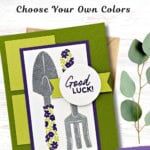 Another thing I really love about this card is how the colors work together to create such a fresh and lively feel. Granny Apple Green and Lemon Lime Twist bring in those bright, garden-inspired tones, while Gorgeous Grape adds just enough contrast to make the design pop. It’s a combination that feels both playful and balanced, and it really helps highlight the stamped details—especially with the Two-Step images layered on the tools.