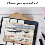 Together, these colors create a calm, cohesive look that works especially well for thank you and masculine cards. Nothing feels loud or busy. Instead, the palette lets the scenery in the paper shine and gives the whole card a relaxed, timeless feel—perfect for a card you’ll actually want to send.