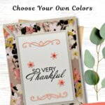 To build the base, I started with Basic Beige cardstock, then layered on a soft floral pattern that complemented the warm coral tones. The framed sentiment—“So Very Thankful”—sits front and center, surrounded by die-cut flourishes in Petal Pink and accented with Calypso Coral gems for just a bit of sparkle.
