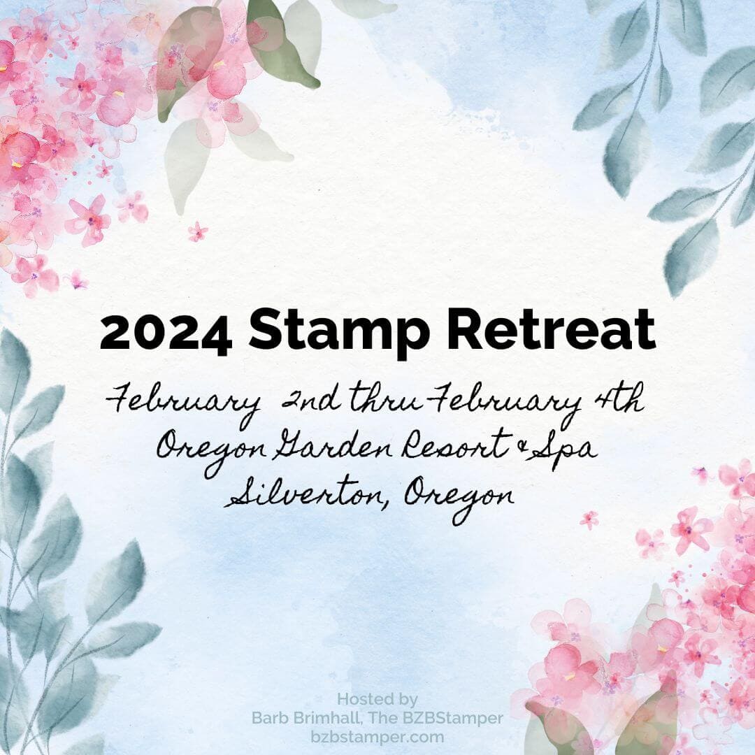 Join us for the 2024 Stamp Retreat at the Oregon Garden Resort.   This payment includes all your cut cardstock, stamps, inks, and embellishments to create 50 cards, 2 each of 25 designs.  It also includes a buffet lunch and dinner on Saturday.  If you stay at the Oregon Garden Resort, you will receive a complimentary ticket for a full breakfast buffet.   Overnight rooms are not included in this ticket price.  Once you register, you’ll be sent an email within 48 hours with information on how to reserve your overnight rooms.